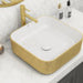 The Pietra collection showcases decorative ceramic sinks that stand out with their hand-painted designs and superior craftsmanship. Constructed from thick porcelain ceramic, these vessel sinks are not only durable but also exude timeless elegance. The glossy, smooth enamel finish on the inner bowl is resistant to scratching, chipping, and crazing, while ensuring water drains easily and keeps the sink dry. With its distinct gold and white color combination and graceful bowl shape, the Pietra collection brings a luxurious and artistic flair to your bathroom.