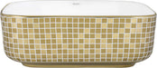 The Pietra collection features a beautiful gold pattern on the outer side and a glossy white inner bowl, making it a stunning addition to any space. Crafted from thick, durable porcelain ceramic, this sink is resistant to scratching, chipping, and crazing, ensuring lasting beauty. Its smooth, non-porous surface makes cleaning effortless and ensures quick drainage. With its center drain and vessel-style design, this sink sits securely on top of your countertop for a clean, symmetrical look that enhances the sophistication of your bathroom or powder room.