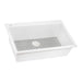 The epiGranite collection is meticulously crafted in Italy, combining 80% crushed natural granite with a proprietary resin for unmatched durability and strength. With the look and feel of real stone, these sinks are resistant to stains, bacteria, and temperatures up to 536°F. The rich, consistent color is applied all the way through, ensuring that the finish will never fade. This top-mount sink features gently rounded corners for easy cleaning, along with a pre-drilled faucet hole and two additional knockout holes for soap dispensers or 3-hole faucets. It also includes a matching white strainer drain assembly, silicone bottom grid, and all necessary installation accessories.