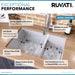 Featuring a commercial-grade brushed finish, the Urbana sink is resistant to scratches and is easy to clean. The sink’s rounded corners provide a sleek look, and the soundproof coating minimizes noise and condensation. Two protective bottom grids help protect the surface from damage while allowing water to flow freely.