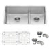 The Ruvati Urbana collection introduces a unique low-divide design with a center divider that drops 4 inches below the sink rim, allowing more room to handle large pots, pans, and baking trays—while still providing separation between the two bowls. Crafted from premium 16-gauge T-304 stainless steel, this sink is engineered to resist rust, stains, and dents. Its commercial-grade brushed finish hides scratches and matches modern appliances, while soundproofing technology and gently rounded corners make it practical and easy to maintain. With undermount installation and included protective bottom grids, the Urbana collection elevates both style and performance in your kitchen.