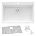 Made with 80% crushed granite for unmatched durability, the sink features a non-porous, anti-bacterial finish. It also boasts noise-reducing construction and a pre-drilled faucet hole with additional knockout holes for versatility. The under-mount installation is easy with included templates and mounting clips.