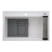 Ruvati’s epiCube collection is crafted with functionality and style in mind. Made in Italy, these sinks feature two workstation ledges—one at the top and one at the bottom—allowing for versatile prep work and maximum sink space. Constructed from 80% crushed natural granite, these sinks are incredibly durable and can withstand high temperatures up to 536°F. The Arctic White finish is colored all the way through for a consistent, long-lasting look. The included gray composite cutting board with dish rack openings fits perfectly on the ledges, and its non-porous surface makes it hygienic and easy to clean. The patented foldable drying rack is made from stainless steel and flexible silicone, providing convenience for drying dishes. Rounded corners offer ease of cleaning, while the sink includes a matching strainer and all necessary installation components.