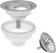 This high-quality strainer is built with solid ABS polymer and PVC, offering a durable and long-lasting solution for kitchen sinks. It provides efficient waste trapping, preventing large food debris from clogging your drains. The push-in stopper cap ensures you can easily fill your sink with water by sealing the drain securely. This strainer is perfect for sinks made of granite, quartz, or other materials and is designed specifically for use with standard plumbing, not garbage disposals.