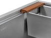 Made from durable 16-gauge T-304 stainless steel, this colander is built to resist rust and stains, ensuring long-lasting performance. The ergonomic wooden handles provide a modern, comfortable grip. Designed to hang over the sink bowl, it offers convenience when rinsing or draining, making it an ideal addition to your workstation sink. Compatible with all LedgeFit® sinks, it provides a perfect fit for both single and dual-tier setups.
