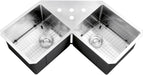 This Gravena collection sink features a unique double-bowl design with a butterfly installation, perfect for corner placement in your kitchen.