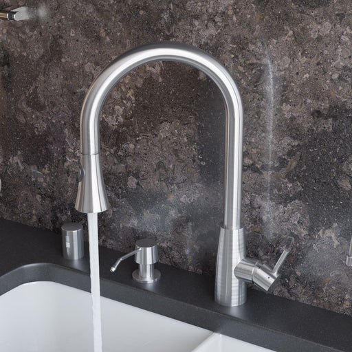 View full detailsWhitehaus Modern Goose Neck Kitchen Faucet with Side Spray
