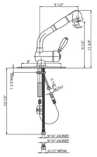 View full detailsWhitehaus Modern Deck Mount Pull Out Single Hole Kitchen Faucet