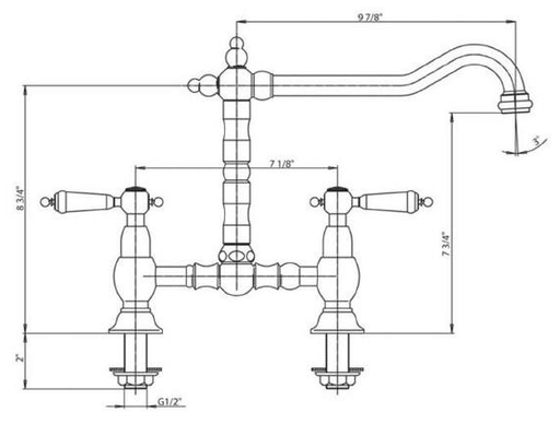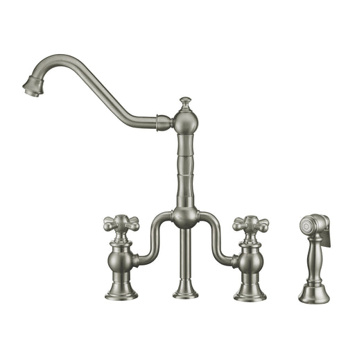 View full detailsWhitehaus Bridge Faucet with Long Traditional Swivel Spout and Side Spray