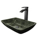 The VIGO Rectangular Gray Onyx Glass Vessel Bathroom Sink brings a touch of luxury to your bathroom with its delicately marbled black and silver finish. Handcrafted and kiln-fired, this solid tempered glass sink offers both beauty and durability for your modern bathroom space.
