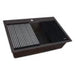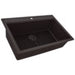 Handcrafted in Italy, the epiStage collection offers an ultra-modern kitchen solution with its built-in workstation design. The sink features front and back ledges, creating a platform for Ruvati’s signature accessories. Constructed from 80% crushed natural granite, this sink provides unmatched strength and durability, able to withstand temperatures up to 536°F. The natural stone finish in Espresso (with other color options available) provides a rich, consistent appearance that won’t discolor over time. The sink includes a black composite cutting board and a foldable drying rack that slide effortlessly on the integrated tracks, while the patent-pending silicone bottom grid protects the sink from scratches. The rear center drain maximizes under-sink storage, making this sink as functional as it is beautiful.