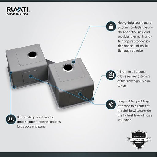 RuvatiThis kitchen sink collection features deep, square bowls with a thick, solid rim, perfect for modern kitchens. Details Constructed from premium 16-...