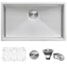 Crafted from high-quality T-304 stainless steel, this sink features a commercial-grade brushed finish that resists scratches and complements your kitchen appliances. The gentle rounded corners make cleaning a breeze while the soundproof coating reduces noise and condensation, providing a quieter washing experience. The sink includes a decorative drain cover and protective bottom rinse grid, offering both functionality and aesthetic appeal. Perfect for a modern kitchen, the Gravena collection blends style with durability, offering a premium experience with every use.
