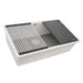 The epiStage collection offers a perfect blend of beauty and practicality. Crafted in Italy, each sink is made from 80% crushed natural granite, ensuring extreme durability and strength, able to withstand high temperatures up to 536°F. The workstation sink design features built-in ledges that create a platform for Ruvati’s unique accessories, allowing you to perform all your prep work directly on the sink. The natural stone finish, available in a variety of colors, is colored all the way through for a consistent, fade-resistant look. The rear center drain maximizes storage space, while the silicone bottom grid and foldable drying rack enhance functionality.