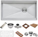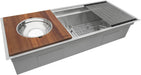 Featuring a patented dual-tier ledge, this sink offers two levels of tracks for sliding accessories, enhancing workspace versatility. The innovative sloped bottom ensures water and debris drain efficiently, while the offset drain allows for extra under-cabinet storage. Made from durable stainless steel with a commercial-grade brushed finish, it resists scratches and provides a sleek, modern look. The included accessories, including a solid wood cutting board, mixing bowl with colander, and a three-bowl serving tray, make food prep effortless.