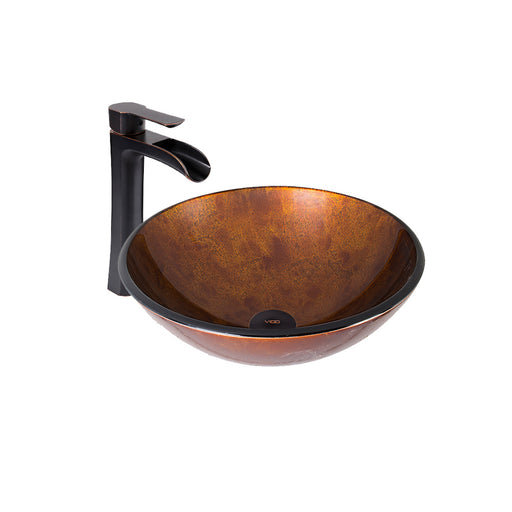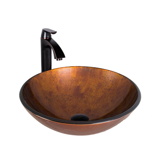 View full detailsRusset Glass Vessel Bathroom Sink Set With Linus Vessel Faucet In Antique Rubbed Bronze