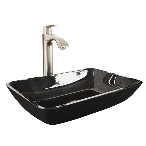 View full detailsMatte Shell Sottile Glass Rectangular Vessel Bathroom Sink in Black with Ashford Faucet and Pop-Up Drain in