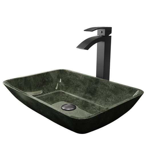 View full detailsRectangular Gray Onyx Glass Vessel Bathroom Sink Set With Duris Vessel Faucet In Matte Black