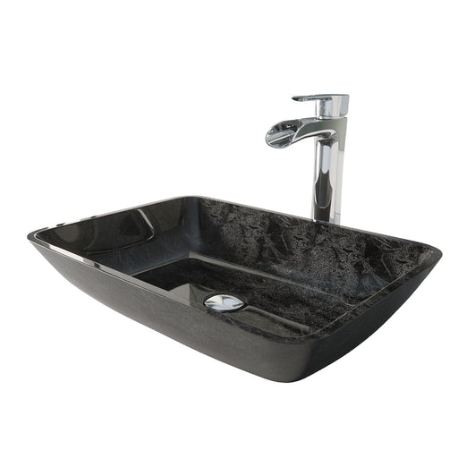 View full detailsRectangular Gray Onyx Glass Vessel Bathroom Sink Set With Niko Vessel Faucet In Chrome