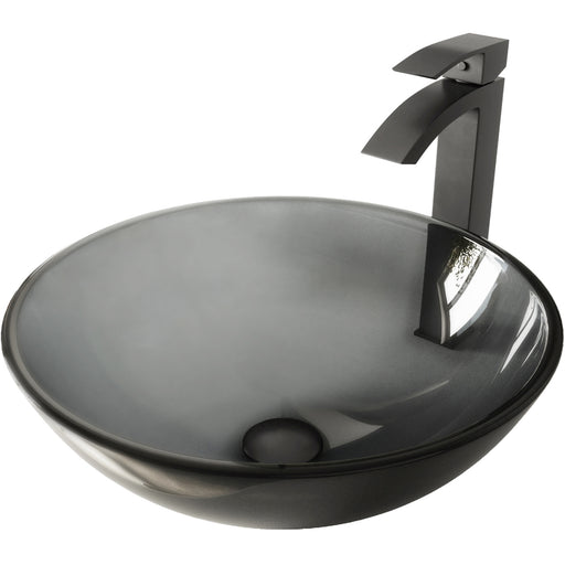 View full detailsSheer Black Glass Vessel Bathroom Sink Set With Blackstonian Vessel Faucet In Matte Black