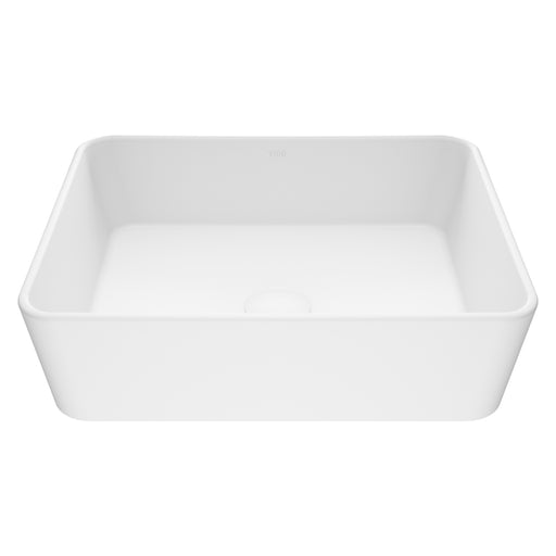 Matte Stone Magnolia Composite Rectangular Vessel Bathroom Sink in White with Faucet and Pop-Up Drain in Brushed Nickel