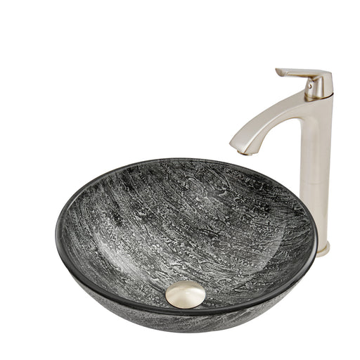 View full detailsTitanium Glass Vessel Bathroom Sink Set With Milo Vessel Faucet In Brushed Nickel