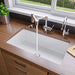 Built to last and crafted from solid 304-grade stainless steel, the LEON kitchen faucet by ALFI brand offers a modern twist on functionality and design. Unlike traditional brass faucets, this deck-mounted faucet delivers a uniquely sleek, pot-filler-inspired appearance while offering the full functionality of a hot and cold kitchen faucet—all controlled with a single lever.
