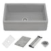 Crafted in Italy from 80% crushed natural granite, this composite sink offers exceptional durability and heat resistance up to 536°F. Its reversible design provides two installation options—one with a rounded apron-front for a traditional look and the other with a sharp edge for a contemporary style. The built-in workstation ledges accommodate included accessories, such as a solid composite cutting board, a foldable drying rack, and a protective bottom grid. The natural matte stone finish in silver gray is colored throughout for a rich, lasting appearance.