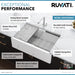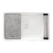 Expertly crafted in Italy from 80% crushed natural granite, this composite sink offers superior strength and heat resistance up to 536°F. The reversible apron-front design allows for two installation styles—one side features a rounded apron for a classic look, while the other has a sharp edge for a contemporary aesthetic. The built-in workstation ledges support included accessories such as a solid composite cutting board, a foldable drying rack, and a protective bottom grid. The Arctic White matte stone finish is colored throughout for a rich, long-lasting appearance.