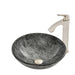 With sweeping silver and white streaks across a smoky backdrop, the VIGO Titanium Glass Vessel Bathroom Sink brings dramatic elegance to your modern bathroom. Handcrafted from durable tempered glass, this all-in-one set offers a distinctive and luxurious addition to your space.